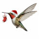 "hummingbird wearing red santa hat", "holding sock christmas decoration", "bootie stocking tree ornament", "flying humming bird in flight", "ruby throated throat", "christmassy funny humorous humor", "cute wildlife birds fly", "hummer birding nature animals", "personalized customized personal", "custom monogram letter initial"