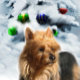 Beau art de vacances de Terrier australien. Le Terrier australien est adorable à côté d'un arbre de noël boisé décoré. Cartes, ornements et vêtements. Beaucoup d'idées cadeaux pour les amateurs australiens Terrier de faire le cadeau donnant vacances extra spécial.