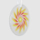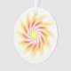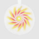 La roue rouge, jaune et orange pivote de chaque côté de l'ornement.