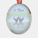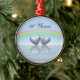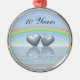 Deux coeurs en étain ou en aluminium flottant sur l'eau sous un arc-en-ciel. Le texte personnalisable dit "10 ans".