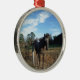 Ornement Rond Argenté Cheval brun Coco et Crème
