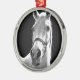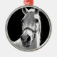 Ornement Rond Argenté Gros plan Cheval blanc noir en nuit