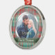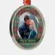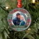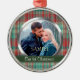 Cette ornementation de vacances en saké présente votre propre photo dans un joli cadre de motif de Noël rouge et vert qui a une garniture intérieure en argent. Une bannière verte tient votre texte customisé ; faites-le dire comme vous voulez ! Un cadeau de conservation élégant et festif pour les jeunes mariés ou tout couple. *Astuce pour placer votre photo — après avoir téléchargé votre photo, utilisez "Customisez-la" et les touches fléchées pour la déplacer pour une meilleure apparence.*
