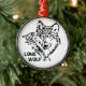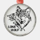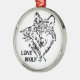 Un ornement de qualité supérieure arrondi avec l'image d'un croquis d'un loup solitaire (Canis lupus) et texte facultatif sur blanc. Consultez la collection complète de l'ornement de la nature et de la faune dans la section HOME.