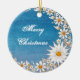 Ornement de Noël - croissant de lune bleu de ciel nocturne dans les marguerites avec le côté positif