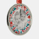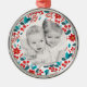 Cet ornement moderne et élégant de vacances de photo comporte une bannière florale décorative. La palette de couleurs est lumineuse et de fête. Ajoutez une image de famille sur l'avant et les noms de famille et l'année sur le dos.