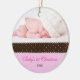 Ornement Rond En Céramique 1er Noël du bébé - Ruban (rose)