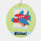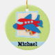 Ornement Rond En Céramique Avion sur Lime Green & White Stripes