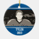 Ornement Rond En Céramique Blue Silver Varsity Classe de photo