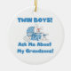 Fiers de nouveaux grands-mères jumeaux vont adorer ce joli design bleu avec deux lapins dans un bassinet bleu et le texte bleu qui dit "Demandez-moi à propos de mes petits-fils !"