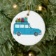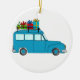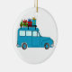Ornement Rond En Céramique Camion de Noël bleu avec cadeaux