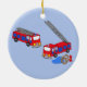 Caricature à bulle Art de deux camions pompiers ou moteurs avec une borne d’incendie et une échelle. Création numériquement par KLeighE de Hinterland Harmony’s Whimsical Cartoon Art ™