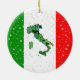 Voici un ornement pour n'importe qui qui est italien et/ou aime l'Italie. Il comporte la carte de l'Italie a superposé au-dessus du drapeau italien avec les flocons de neige en pastel tombant devant lui. Fait un grand cadeau de Noël.