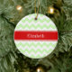 Ornement Rond En Céramique Celery White Chevron ZigZag Nom rouge Monogramme