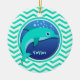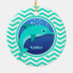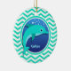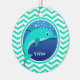 Ornement Rond En Céramique Dauphin ; Aqua Green Chevron