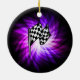 Ornement Rond En Céramique Drapeau checkered; purple