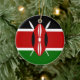 The Kenyan flag is a horizonttricolour with in the center an emblem. The used colors in the flag are red, green, black, white. The proportion of the Kenyan flag is 2:3. The Flag of Kenya, adopté en 1963.
