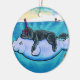 "Water Babies" illustre la nature du chien d'eau portugais et sa facilité avec la mer. Ce chiot prend un tour coloré sur un manat amical. Encres et crayons colorés. c)2014 Andie.
