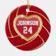 Ornement Rond En Céramique Élégant ballon rouge foncé et volleyball or