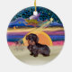 Ornement Rond En Céramique Étoile de Noël - Wire Haired Dachshund