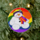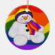 Joli ornement suspendu d'un petit bonhomme de neige dans un casquette de fierté arc-en-ciel et écharpe sur un arrière - plan arc-en-ciel .. merveilleuse idée cadeau pour Noël de Ricaso