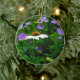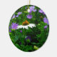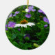 Ornement Rond En Céramique Fleur de cône blanc, fleurs pourpres et papillon