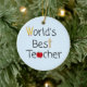 Collection de fournitures scolaires de Cool de meilleur enseignant du monde. Comprend l'utilisation de crayons, règles et une pomme rouge brillante dans le texte. Ces produits font de grands cadeaux pour votre professeur préféré! Customisez ce délicieux ornement en noir et bleu poudre pour le cadeau de vacances parfait pour le grand éducateur dans votre vie!