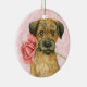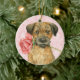Ornement Rond En Céramique Frontière Rose Valentine Terrier