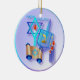 Ornement Rond En Céramique Hanoukka Dreidel-Heureux en verre bleu