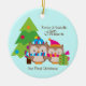 Ornement Rond En Céramique Hiboux de Noël - premier Noël