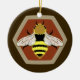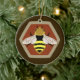 Ce joli design présente une abeille au miel graphique en noir et jaune contre la couleur chaude de la rouille orange.