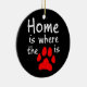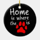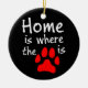 Un jeu de mots avec la citation "La maison est là où le coeur est", ce ornement rond en céramique a les mots "La maison est là où l'image [empreinte de patte] est", avec l'image empreinte de patte en rouge, représentant le "coeur". Le cadeau idéal pour les amoureux des animaux de compagnie.