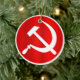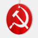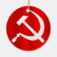 Marteau et sicle sur un cercle rouge vif isolé contre un arrière - plan blanc.
