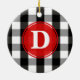 Ornement Rond En Céramique Monogramme noir et blanc de plaid de bûcheron