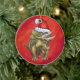 Ornement Rond En Céramique Noël de Triceratops sur le rouge