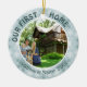 Ornement Rond En Céramique Notre première maison, flocons de neige Turquoises