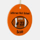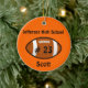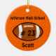 L'ornement de Noël de football sur mesure fait dans un ornement orange rond, avec le nom et le numéro de maillot en noir sur une icône de football. Personnalisez le nom ou le texte en fonction de vos besoins. Fait un joli ornement pour les enfants ou votre joueur de football vedette.