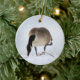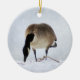 Ornement rond en céramique avec une conception numérique d'une oie canadienne en hiver.