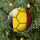 Drapeau de Belgique gravé sur un ballon de football sur un ornement en céramique recto verso.