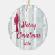Ornement Rond En Céramique Personnalisé Date Noël Cardinal Bird Birch Tree