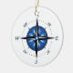 Ornement Rond En Céramique Rose de boussole bleu
