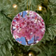 Ornement Rond En Céramique Sakura Cherry Blossoms Red Stars