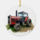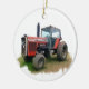 Ornement Rond En Céramique Tracteur rouge de Massey Ferguson dans le domaine