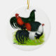 Ornement Rond En Céramique Trio de coq à longue queue