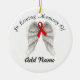 En mémoire du ruban de sensibilisation rouge avec ailes angéliques. Ajoutez un nom pour personnaliser cet ornement de Noël. Red Ribbon est pour : sensibilisation au VIH/SIDA, à la toxicomanie (Red Ribbon Week est souvent organisé dans les écoles américaines), à la vasculite, à la cardiopathie, à l'épidermolyse, à la bullosa, à la conduite en état d'ébriété. Si vous choisissez un autre ornement de forme, veuillez ajuster la taille de l'image pour l'adapter à cette forme particulière
