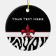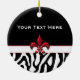 Personnalisez cet ornement rouge noir de Zebra Fleur de Lis pour n'importe quelle occasion ou cadeau. L'ornement comporte un symbole rouge de Fleur de Lis en métal de faux sur un noir, un rouge, et une conception de motif de zèbre.