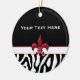 Ornement Rond En Céramique Zebra Fleur de Lis rouge noir personnalisé