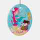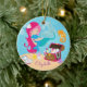 Personnalisez la sirène rose mignonne datée jugeant un ornement de Noël personnalisé par dauphin réglé sur un arrière - plan de bulle de l'eau bleue avec un coffre au trésor et un hippocampe. Visitez notre magasin pour regarder cette sirène adorable dans les une série de des couleurs de cheveux et d'habillement.