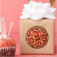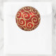 Autocollant rond avec l'image d'un beau ornement rouge de Noël avec des tourbillons d'or brillant. Voir les confettis correspondants et le papier d'emballage. Voir la collection entière de Sticker de Noël sous la catégorie CARDS & STICKERS dans la section VACANCES.