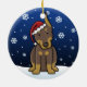 Ornement rouge mignon de Noël de dobermann, dessiné dans la bande dessinée de kawaii ! Cette race adorable de chien utilise un casquette rouge de Père Noël, et les flocons de neige tombent tout autour de lui. Absolument chéri, parfait pour l'arbre de Noël de l'amoureux des chiens !